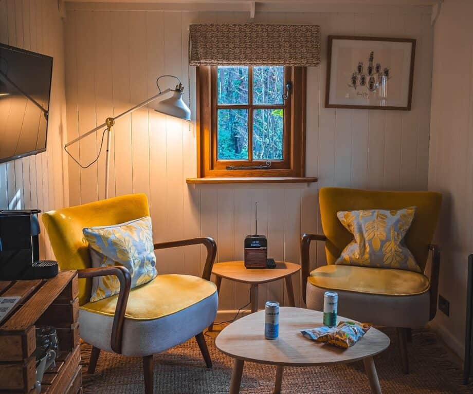 All items from the Shepherd Hut’s mini-bar including lagers, vodka cocktails and chocolate are complimentary. It also houses fresh milk for tea and coffee.